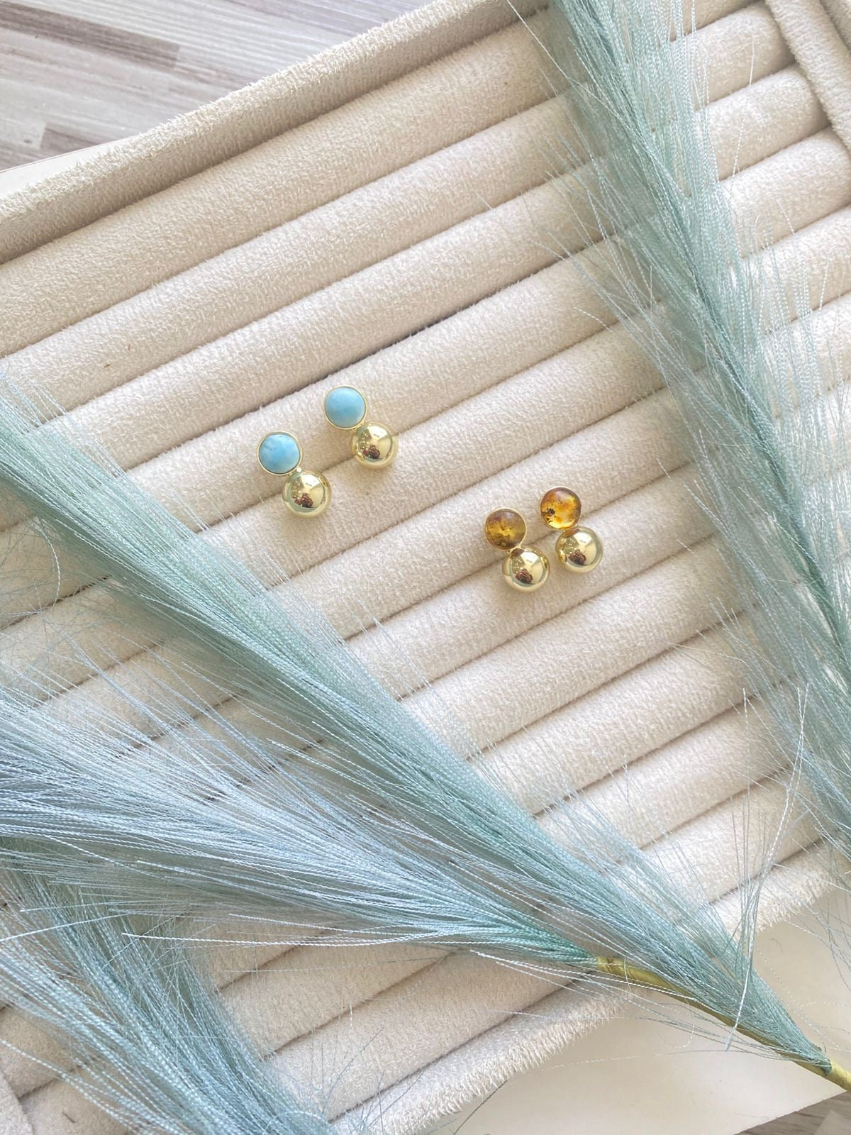 Hermosa combinacion de bola laminada en Pro 18k con piedra de Ámbar o Larimar Beautiful combination of laminated ball in Pro 18k with Amber or Larimar stone